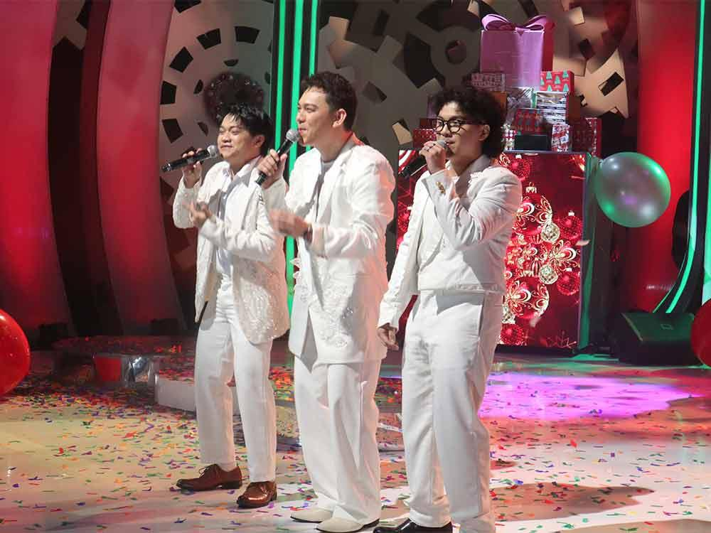 Magkakasama sina Baron Angeles, Julius Cawaling, at Bjorn Morta sa opening number ng “Tanghalan ng Kampeon 2025: Ang Huling Bangaan” sa TiktoClock.